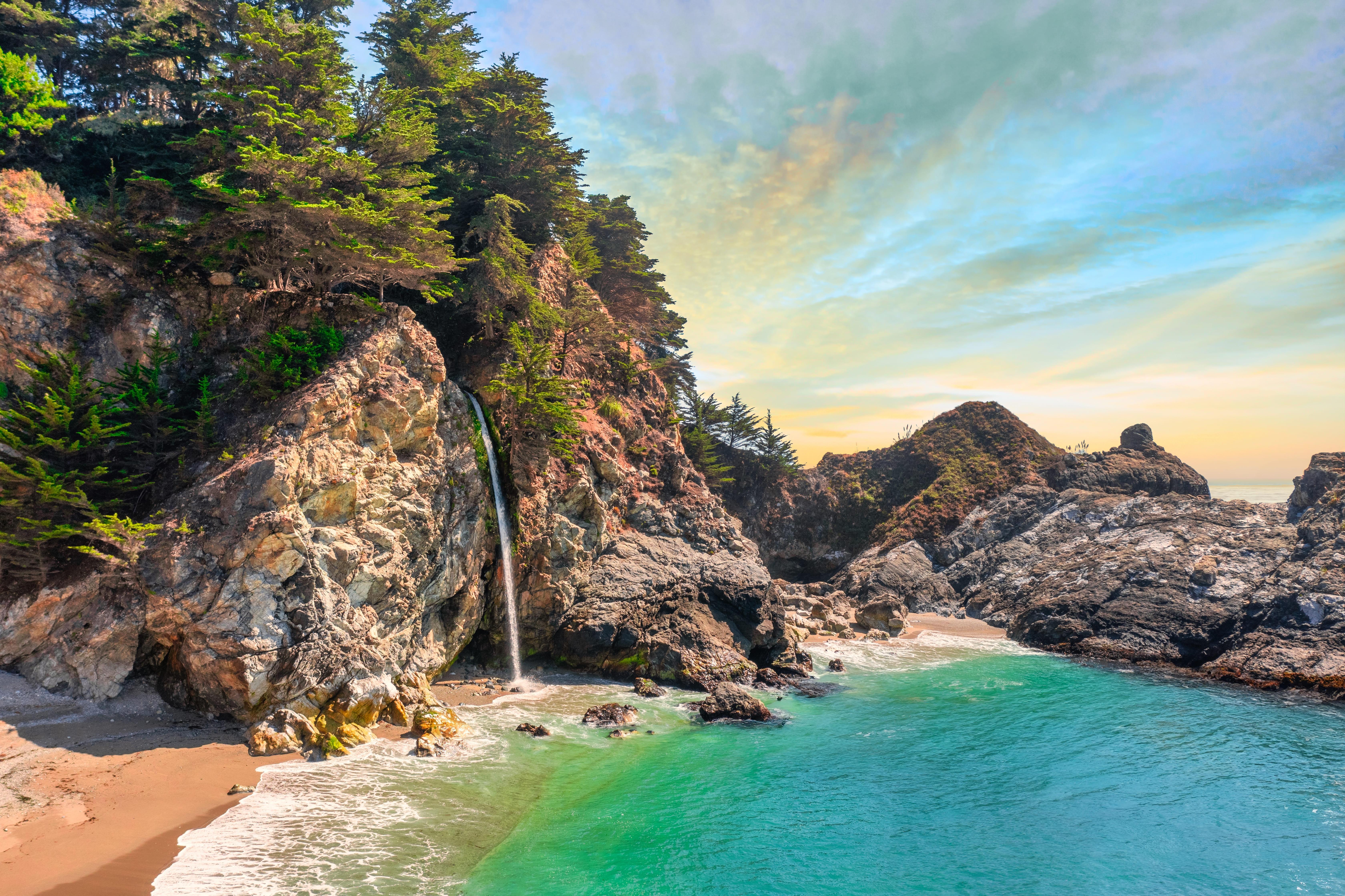 Bäche und Flüsse, die durch die Regenfälle des Winters aufgefüllt wurden, sorgen für größere Wasserfälle. Besonders beliebt sind die McWay Falls im Julia Pfeiffer Burns State Park und die Pfeiffer Falls im Pfeiffer Big Sur State Park.